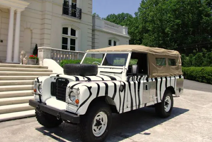 You all remember 101 Dalmatians? If memory serves, Cruella de Vil, before aching longingly for some Dalmatian fur, was all about zebras. Perhaps if she wanted to take a safari through Africa and see some zebras up close, this Land Rover would have served her well.