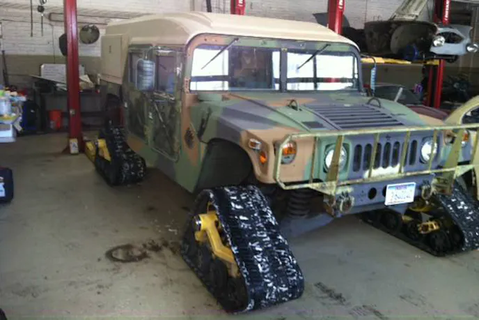 Last but not least, let us ask: Why? Wyoming, of course. That’s where we found this 1994 HMMMV. It’s riding around not on wheels, but on a set of Mattracks, which are aftermarket conversion kits that swap out wheels for continuous tracks.