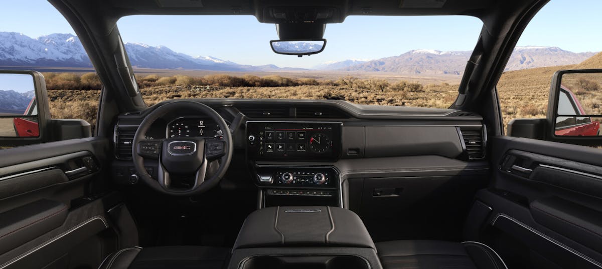 The first-ever GMC Sierra HD AT4X brings an interior like never before. Inside, the luxurious appointments and comfort are premium for an off-road-capable HD pickup. AT4X offers an exclusive Obsidian Rush interior that features power-massaging front seats and full-grain leather-wrapped seats throughout. As a distinguished touch, authentic Vanta Ash wood décor and 12-speaker Bose Premium Series audio system with Centerpoint surround technology is a nice addition. The AEV Edition also features the AEV logo on the front-seat head restraints and unique AEV-branded floor liners.