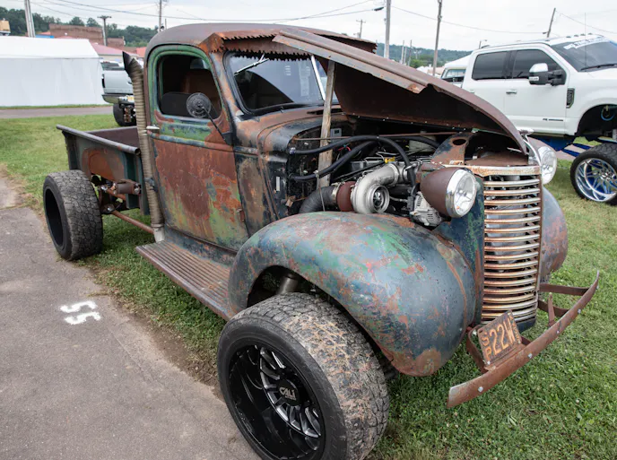 At first, I’m like okay, this is a really cool rat rod that someone has thrown together. I take a closer look and realize that there is a serious powerplant under the hoods. About that time, Salokas walks up and begins to tell me the story. Salokas has a background in diesel motorsports and this has actually been a father-son project. Even though TJ is more of a Power Stroke guy, his father said he needed a Cummins to make good horsepower. Well, here we are.