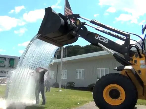 Then, there is the cement truck mixer option. Now, this family chose to have 1200 gallons of ice cold water dumped on them from their company cement truck. Another interesting use of a diesel vehicle for this challenge.