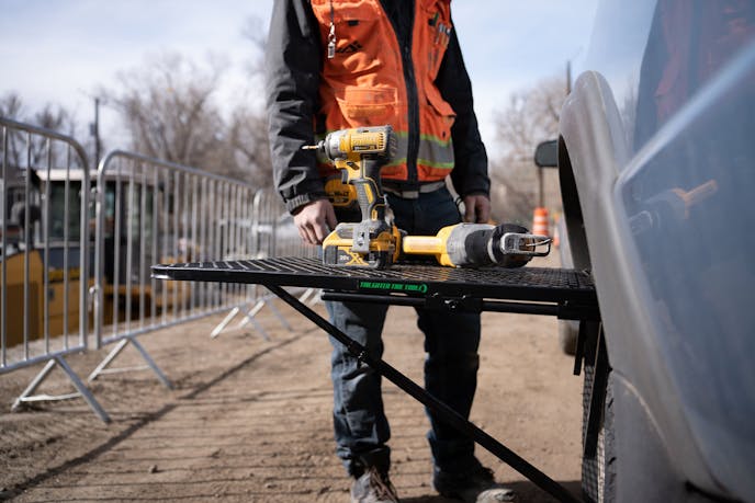 While you might not consider a table one of your must-have truck accessories to carry in your truck, hear me out. How many times have you had to work on our truck or help someone else and wish you had a workbench at the front of the truck? Now you can, The Tailgater Tire Table is small enough that it doesn’t take up much room in your truck when not in use. The table is 1-1/2 inches thick when folded up, and the legs are stored neatly under the table.