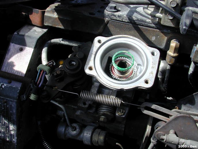 While working on the pump, many people also replace the governor spring. The spring is located under the top cover of the pump (the area directly underneath the fuel pin). The installation of the governor spring allows for full fueling to a variety of RPM ranges. A #366 spring is used for 3,200 rpm, a #374 is good for 3,800 rpm, and lastly, a #354 allows for fueling to 4,200 rpm.