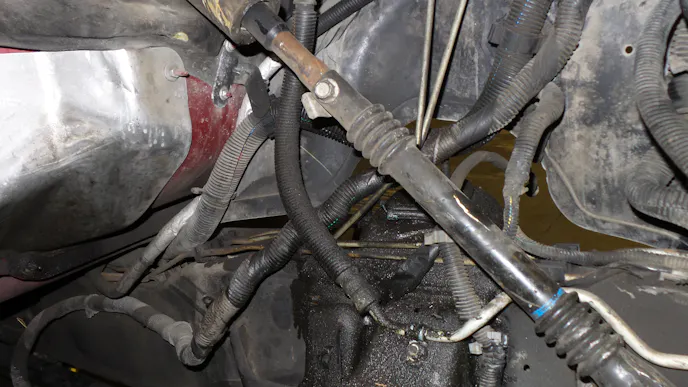 Before testing and making sure everything is leak-free, clean the work areas up with Brakekleen and rags or wherever power steering fluid leaks. Once you’ve checked the steering orientation is in the right direction, you can then reinstall the upper and lower steering shafts and ECM connectors.