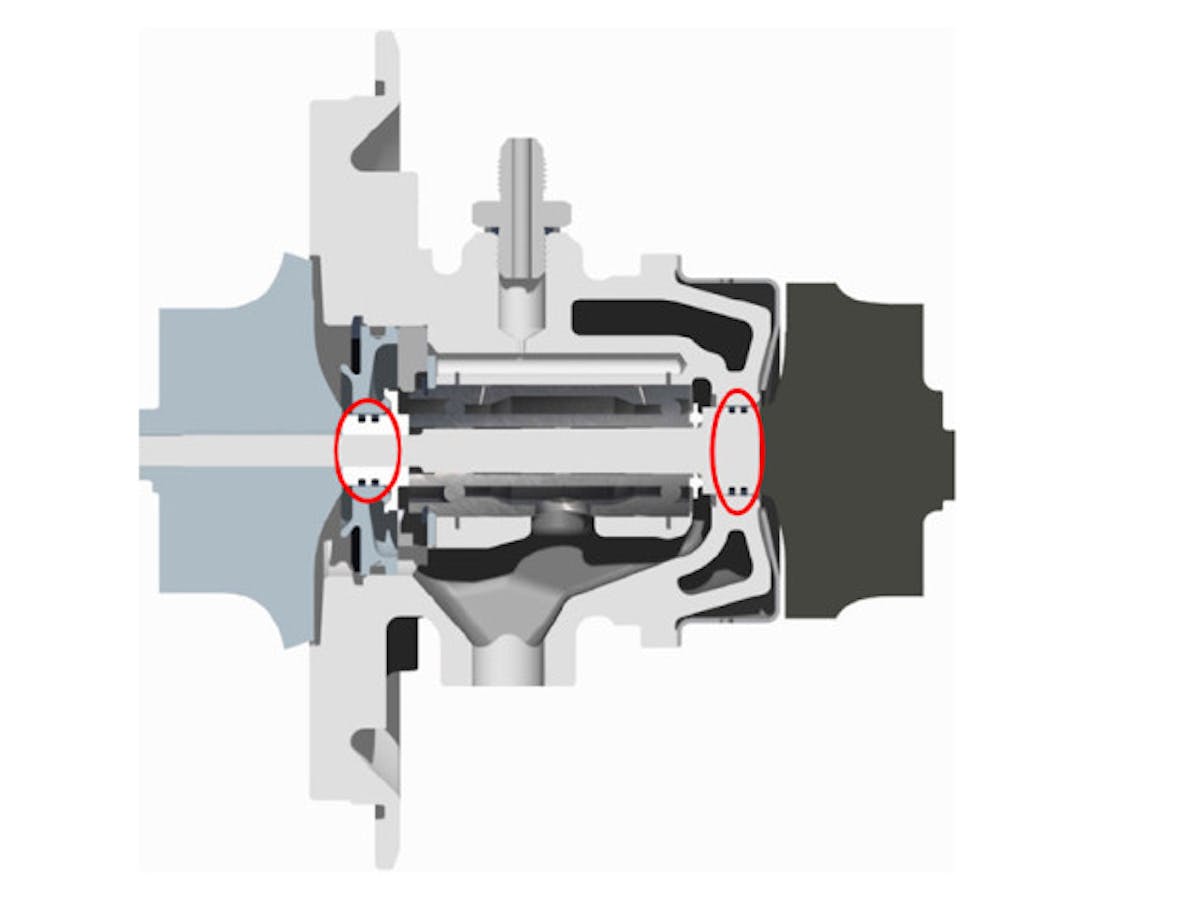 “The ball bearing is much better at surviving abuse such as compressor surge, marginal oil quality, low oil pressure, and harsh acceleration,” says Fraser. “The thrust capacity of a ball bearing is believed to be about 10 times that of a conventional thrust bearing but to be honest, we don’t know the exact figure because our thrust load test rig cannot currently develop enough force to overload one. We do know that it has at least five times the capacity. Unlike the conventional system where higher axial load capacity comes at the expense of friction losses, the thrust capacity of a ball bearing is “nearly free,” by comparison, when it’s not heavily loaded.”