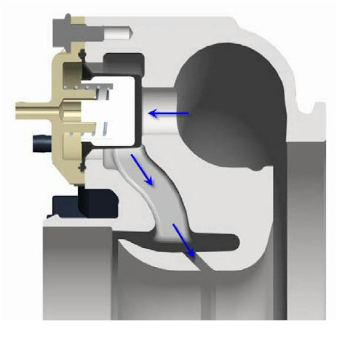 “As part of our ‘clean sheet’ approach, we wanted to make internal wastegates that were capable of handling the flow requirements of high performance applications,” says Fraser. “This meant very large valve sizes (36 mm and 42 mm valve head) and aerodynamically-efficient porting. When you look at these designs, you won’t see harsh corners, fabricated edges, or other losses. When as much as 40 percent of the flow needs to pass through the wastegate at maximum power, a flow-optimized solution is needed.”