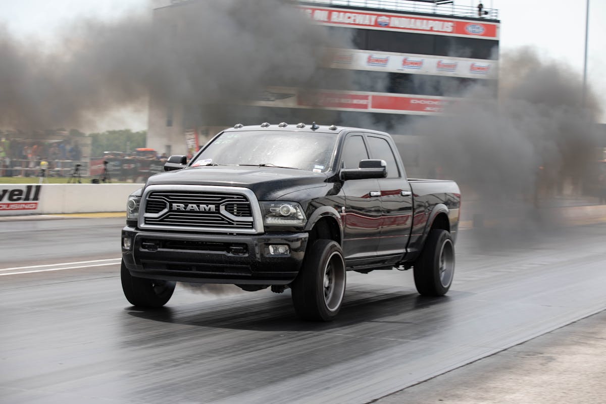 Top spots went to the Burkhard’s at Dirty Hooker Diesel team, Justin Zeigler in mObscene, and YouTube’s Turba Tom Borrell in his garage-built fourth-gen Ram. Borrell had a best pass of the day stopping the clocks at 5.336 while Zeigler was just ahead with a 5.30 pass. The competition was tight and it was an ocean of Cummins. That is until the Dirty Hooker Team got their chance at the track.
