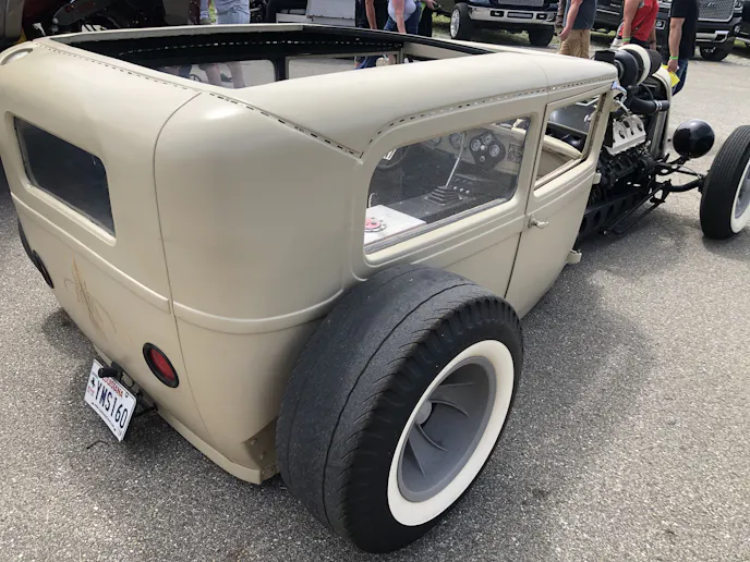 Typically when you’re walking through a show area you see all kinds of builds. At UCC, that was no different but there was something pretty unique right up front and that was Ryan Batts’ chopped-down 1929 Ford Model A. This thing was radical looking and nearly stole my attention away from everything else for a moment.