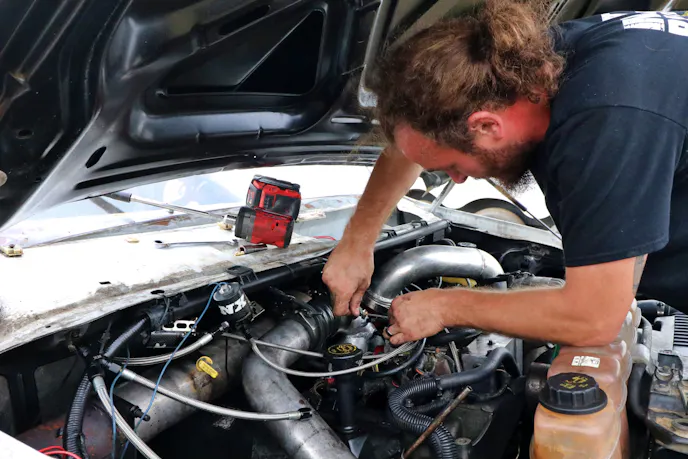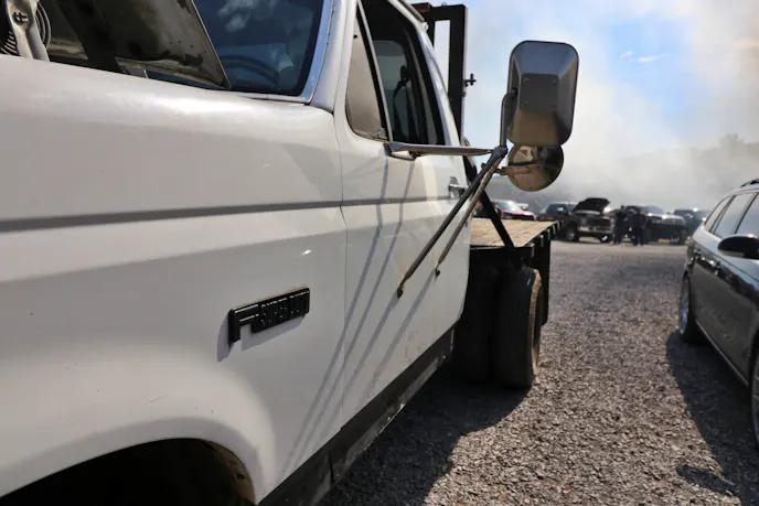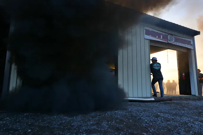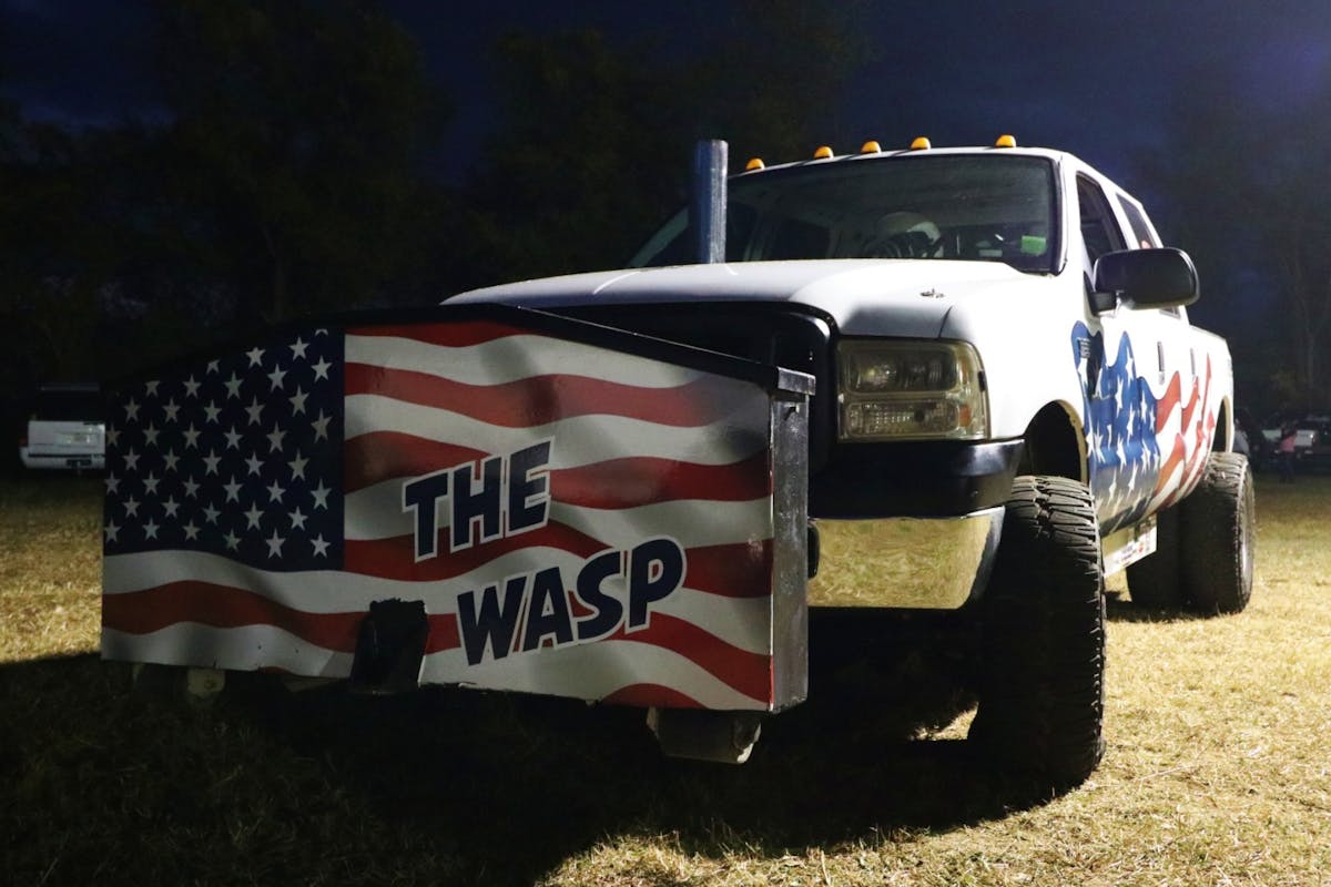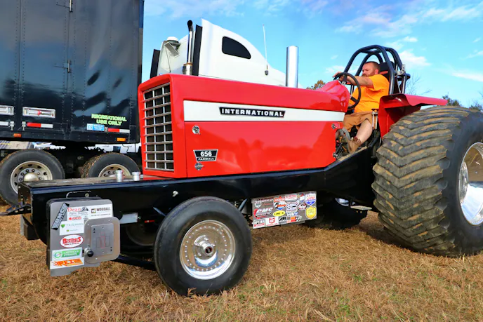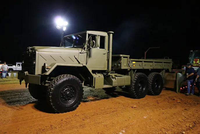 On the far end, just past the machine shop entrance, a small fleet of military trucks ended up with a great view of the burnout pad. We stopped by to talk with Benjamin Eby. Eby sold last year’s entry, a 1986 AM General named Juggernaut, and upgraded to a 1991 Harsco M923A2. While the new truck hasn’t earned a name yet, he was excited to see how the 8.3-liter and five-speed Allison transmission would perform in the night’s sled pull.