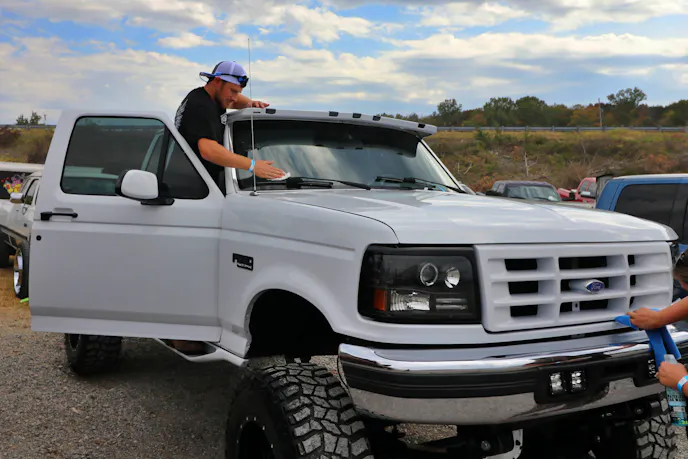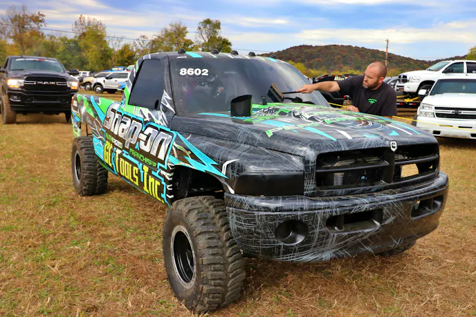The rain picked up again as the dirt drags wrapped up, pushing many into vendor alley and under cover to get an update on the game. When the shower passed, we made our way back over to the Show N Shine where competitors were working to wipe down their rigs.