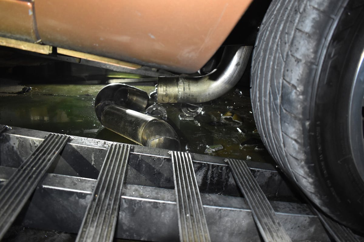The official event was over, but Zach Brodeur added a second stage of nitrous to his monster motor and wanted to do an exhibition pull to see if he too could break 1,000 horsepower. Unfortunately, the second stage was hooked up to the first, providing all the nitrous at once, which can result in bad stuff happening.