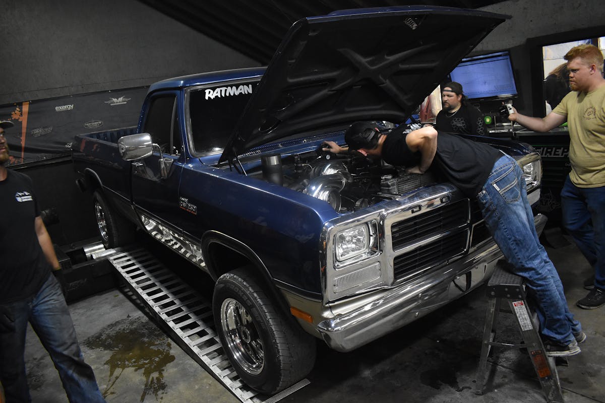 Brian Block brought his tow rig, which turned out hotter than many thought. With an old 57 mm turbo and some new-technology injectors, the Cummins cranked out 399 horsepower on its first pull. Each truck owner was given 20 minutes on the dyno, and Brian made the most of his time. He kept tweaking the setup until he left with 433 horsepower. We joked that given more time on the dyno he would have probably hit 500!