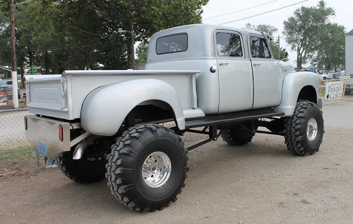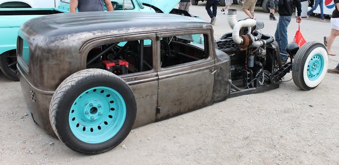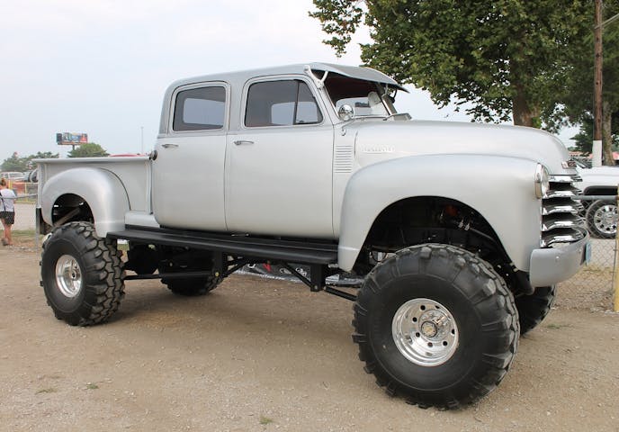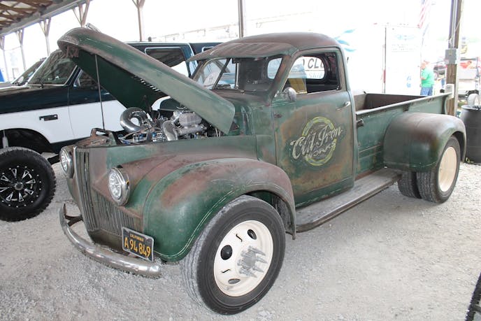 The bare bones interior only had room for two seats with headrests and a fabricated dash with all the gauges to keep an eye on the big diesel. The custom chassis featured an air bag suspension that could be set up for street use or slammed right on the ground when parked.The drivetrain featured a big Cummins diesel with a huge turbocharger high up in the air, and had made more power than the skinny rear tires could handle. There may have been some great looking trucks with bolt-on parts but this rat rod was a work of art built by someone who wanted something nobody else had thought of.