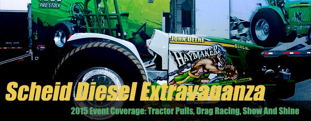 The 2015 Scheid Diesel Extravaganza at the Wabash Valley Fairgrounds in Terre Haute, Indiana featured three days of action for fans of everything diesel. The 19th annual event was packed full of truck and tractor pulls, drag racing, show and shine, and a huge vendor’s midway. The parking lot was even a sort of truck show as everyone shined up and brought in their diesel trucks from all over the country.