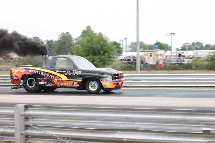 Then if you wanted to see even more diesel action you could take a short walk over to Crossroads Dragway which is also located on the Wabash Valley Fairgrounds. The dragstrip featured a different challenge as racers from the Outlaw Diesel Super Series took their turn trying to put all that diesel power to the pavement. Street-driven trucks, tube chassis racing trucks, semi-trucks, and dragsters were flying down the eighth mile strip while spewing that black smoke high in the sky.