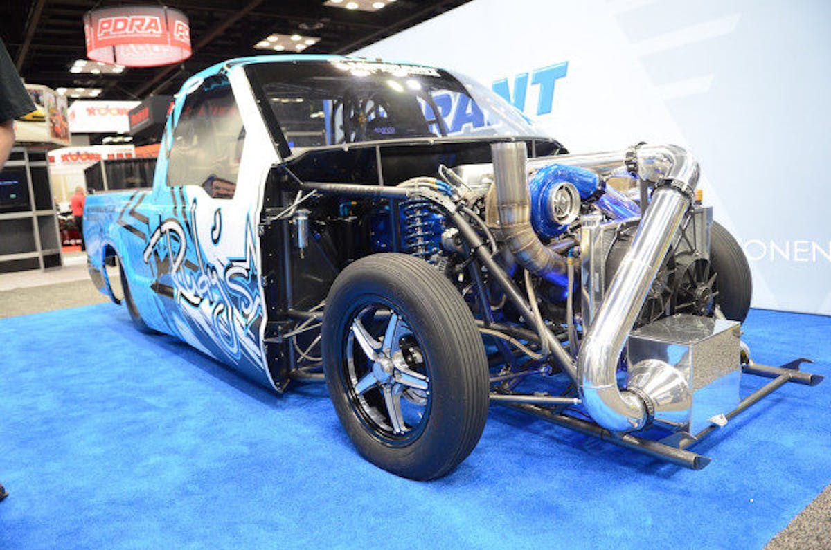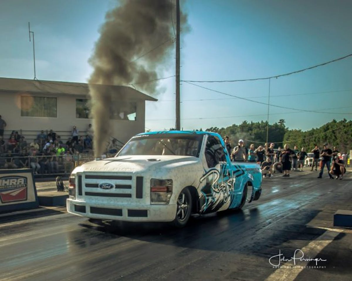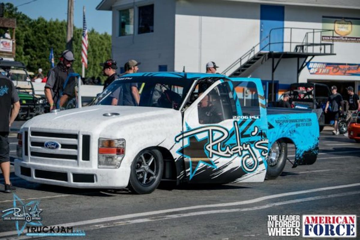 The Rudy’s wrapped, two-wheel drive pick-up truck, is piloted by Rawlings Barnes who is also the chief operating officer of the company. Barnes captains this 6.4-liter Power Stroke demon, in the Suncoast Diesel Transmissions, Pro Mod category.