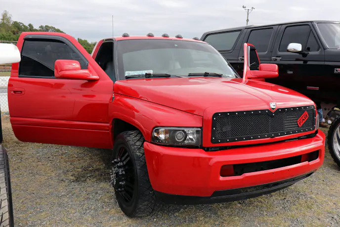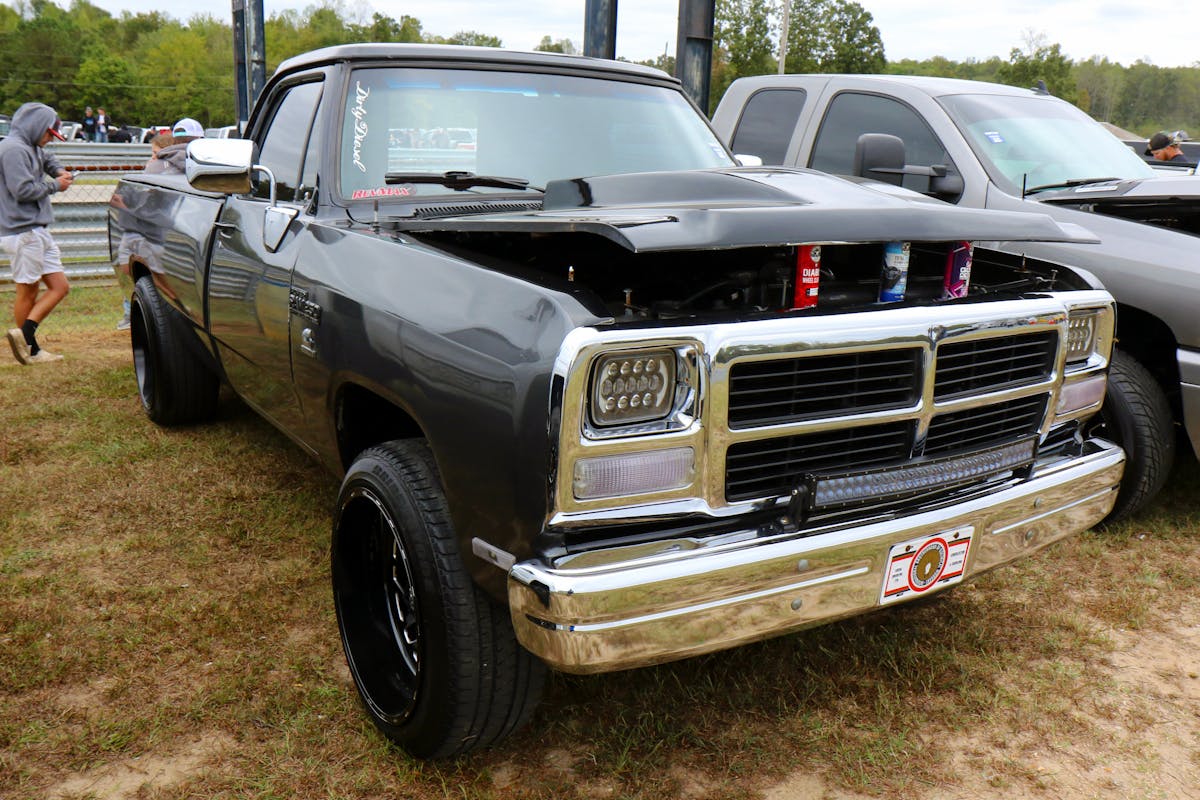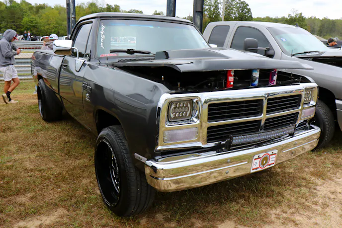 A lowered second-gen standard cab Dodge dually is a great sight to see! This one sports a fourth-gen front bumper, custom grille and HID headlight conversion as well as color-matched tow mirrors to compete with modern diesel rigs.