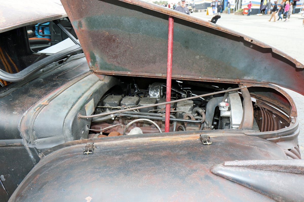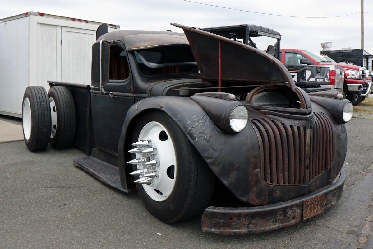 Wow, this vintage rat rod semi is a great looking rig; the 12-valve Cummins stuffed under the clamshell hood makes it look even better!
