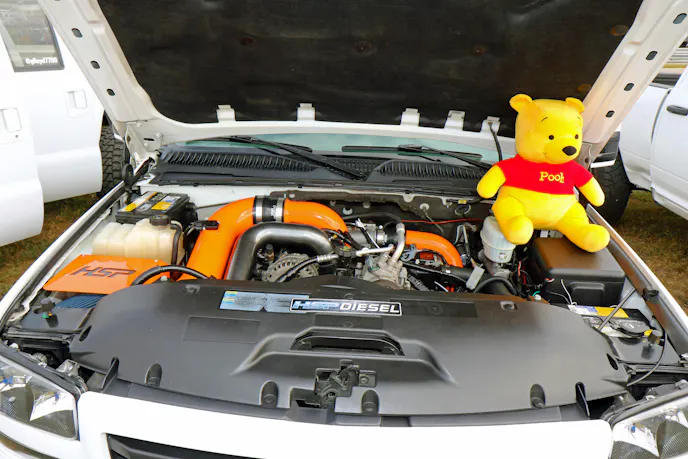 We’re not quite sure what the “Pooh Bear” story is, but this is certainly a great looking GMC Sierra with some nice {link=https://hspdiesel.com/} HSP Diesel {/link} bolt-ons added to the Duramax under the hood.