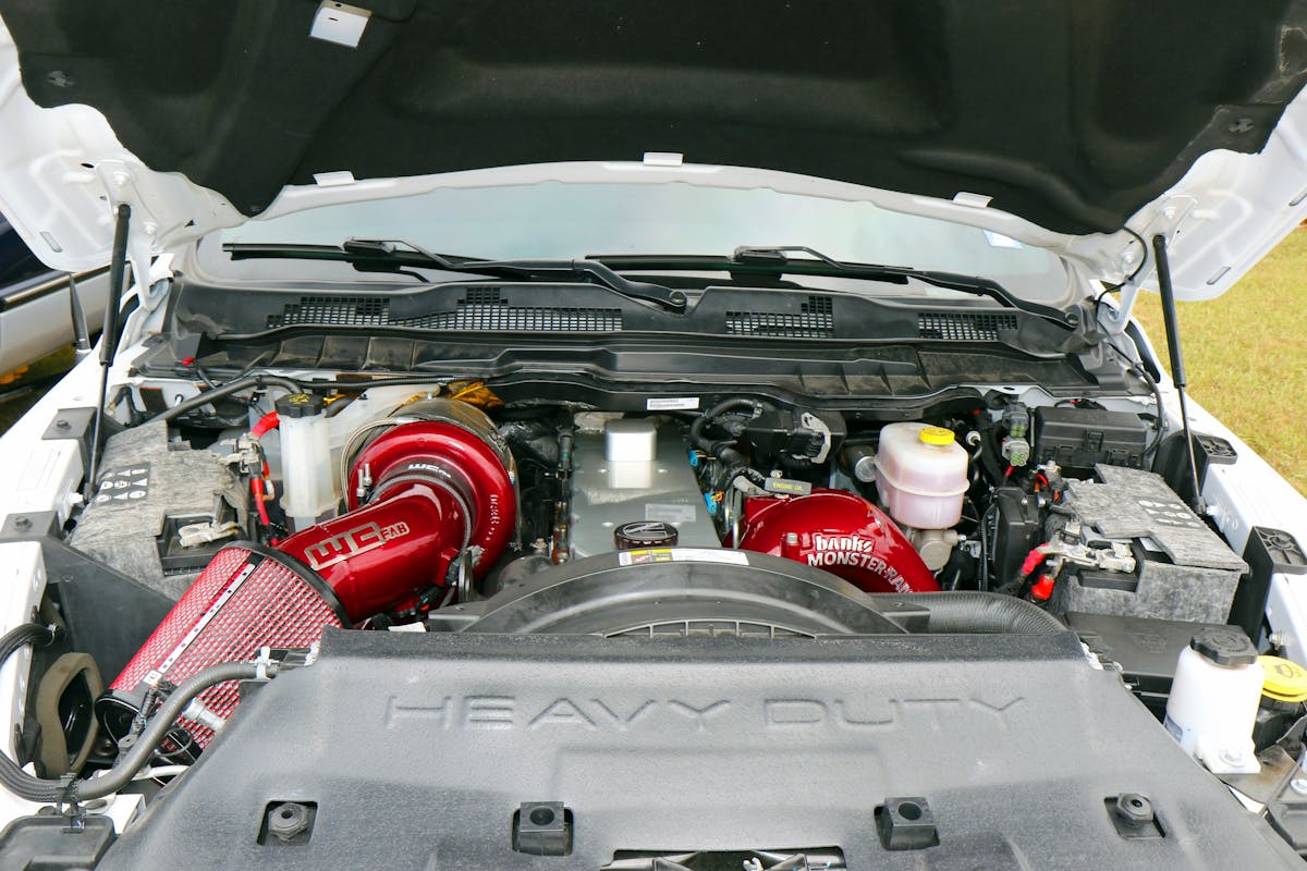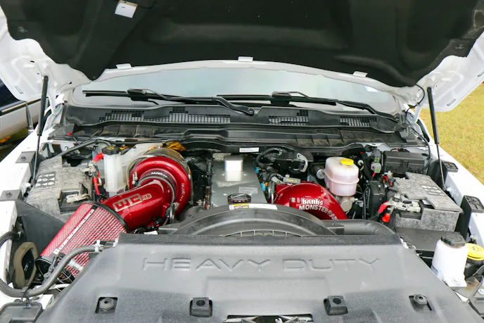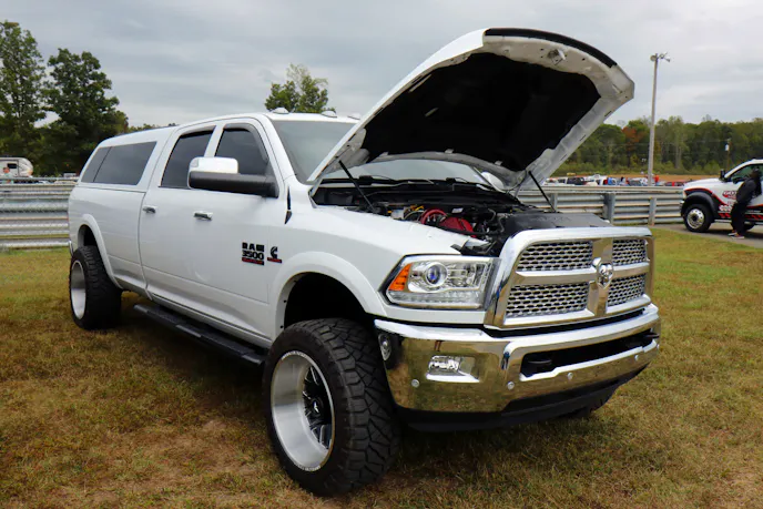 With a shell in the back and moderate-sized {link=https://www.americanforcewheels.com/} American Force {/link} wheels wrapped in {link=https://www.nittotire.com/} Nitto {/link} Ridge Grappler tires, this Ram 3500 looks rather unassuming. But looking under the hood tells a different story with a {link=https://www.wcfab.com/} WCFab {/link} turbo kit, {link=https://www.bankspower.com/} Banks {/link} Monster-Ram intake, and custom powder coating shows that this sleeper means business. Jeremy Eckert’s 2500 Chevy is a super clean rig with great attention to detail throughout the build.