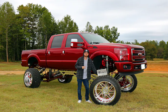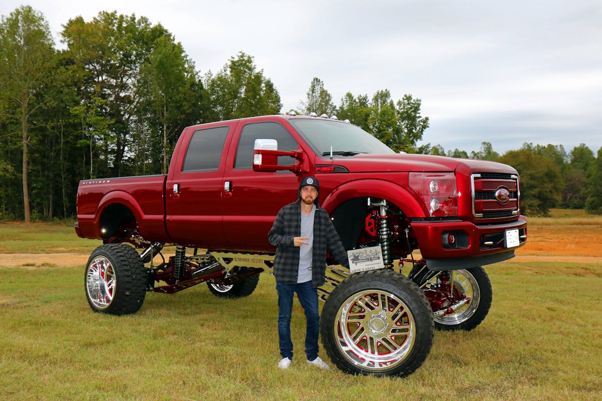 Jeremy Roop’s low riding 2WD Chevy Dually (left) was presented with the Best Duramax award. It is a great looking ride with polished {link=https://forgiato.com/} Forgiato {/link} Duro 10-lug polished wheels catching attention from everyone. Jeremy blasted down the drag strip and ran across the dyno rollers over the weekend showing that his beautiful rig is far more than just a show stopper. With custom painted trim and lighting throughout the truck, it is built to draw attention while he hauls whatever he wants down the road! Brad Linkie won the Best Power Stroke award for his massive F-350 (right) that rides on a huge custom {link=https://strykerordesign.com/} Stryker Off Road Design {/link} suspension system with polished, powder coated and chromed components throughout. Fury Country Hunter M/T tires wrap around highly polished Specialty Forged wheels with custom color-matched accents in the windows and lip lettering to match the Ruby Red Ford.