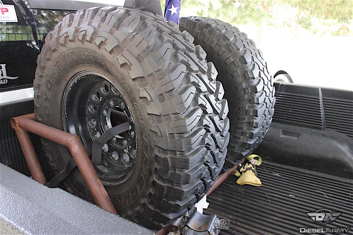Packing some meaty 37-inch Toyo Open Country M/Ts, the pickup had the off-road look down pat. This was helped by a custom-built tire cage in the bed and Rancho shocks on all fours. We also noticed a PureFlow AirDog device stuffed under the driver’s side undercarriage, indicating this owner was aware of fueling issues and wanted them taken care of.