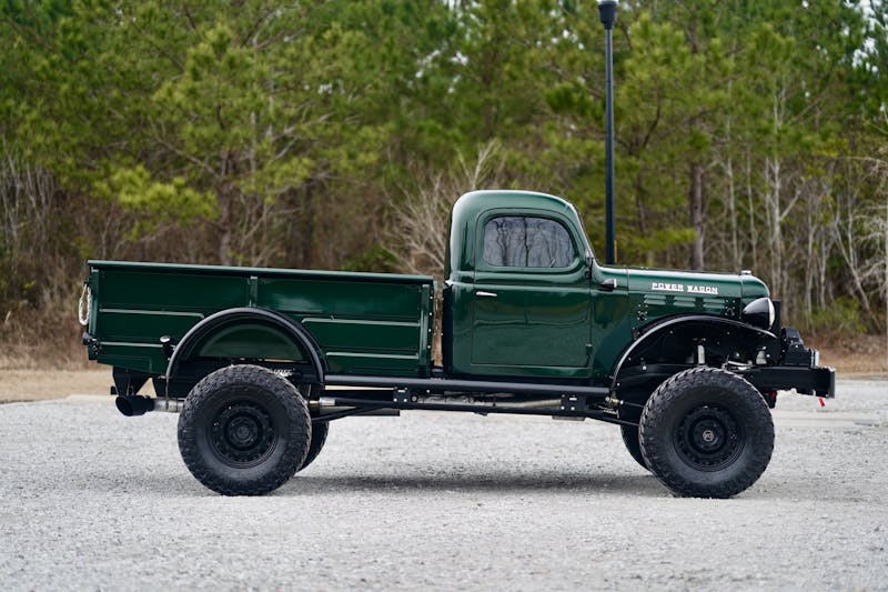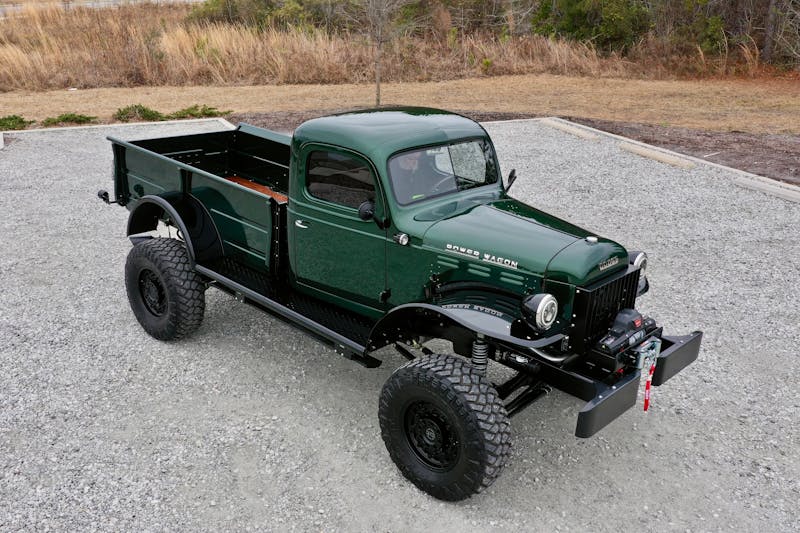 By adding the modern twist of a 5.9-liter Cummins turbodiesel under the hood of this formerly utilitarian 1946 Dodge Power Wagon, Desert Power Wagons has delivered a real winner. Reworked earlier this year with a “Forged for Adventure” theme, this Timberline Green Metallic brute isn’t just another super-clean restomod. It’s a handcrafted masterpiece with over 2,000 hours of precision work poured into every panel, weld, and bolt. It’s the kind of truck that turns heads at shows.