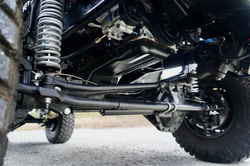 Underneath the vintage sheet metal lies a modern foundation: a proprietary fully-boxed steel ladder frame for maximum strength. The truck rides on a Fox Racing 2.0 suspension system with remote reservoir shocks, giving 9.5 inches of travel at all corners. Whether crawling through rock gardens or blasting through desert washes, this Power Wagon handles it all with poise.