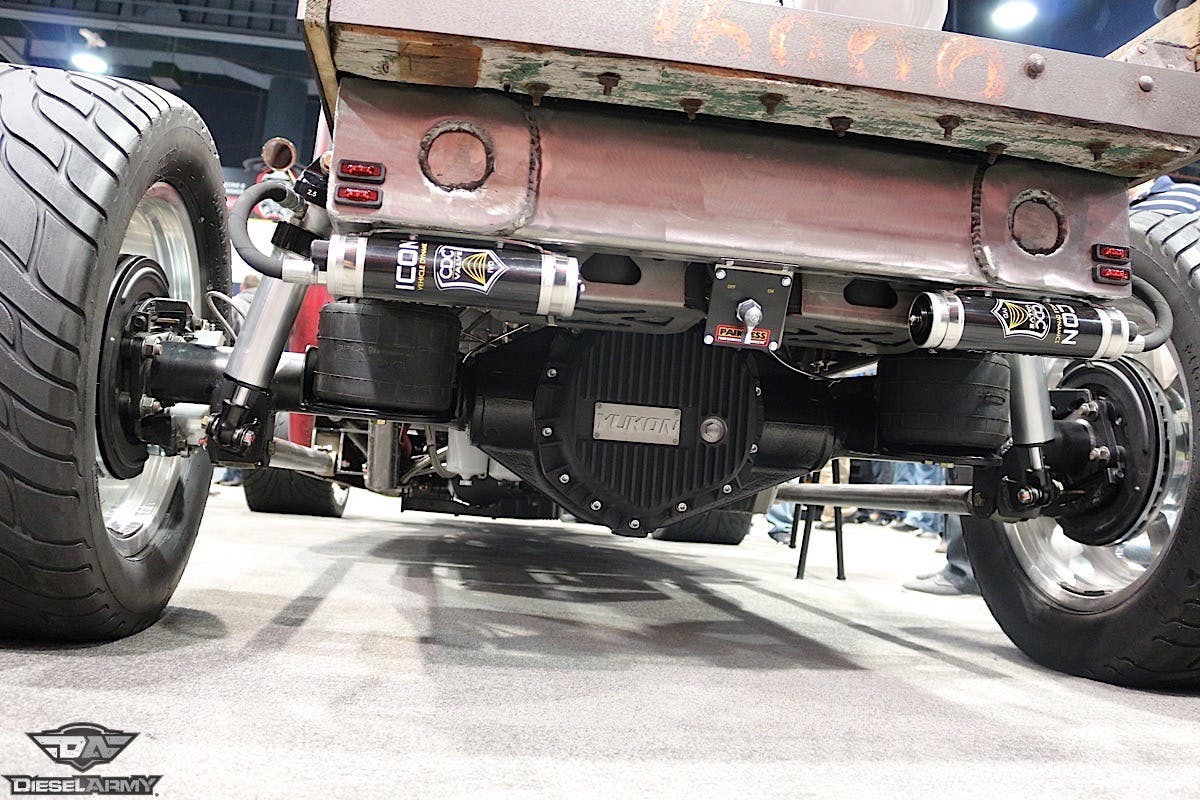 Diesel Army: We see the truck is supported by air-bag suspension, a nice resto mod touch for this modernized rat rod. The control arms and rear links are obviously customized as well, tell us about the suspension.