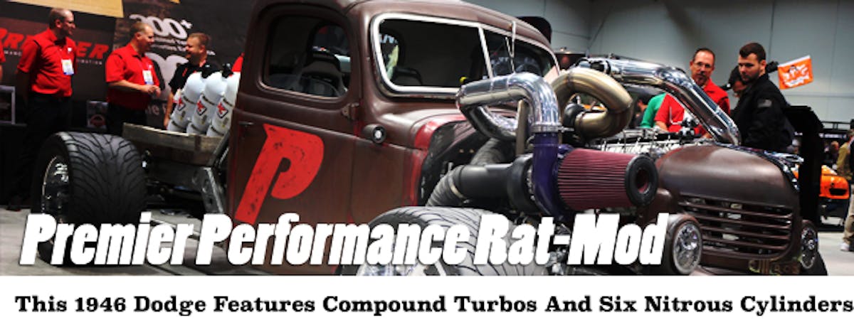 Rat-Mod_edited-1As far as rat rods and rat trucks go, there are two categories: the true rusty heaps, and the show trucks masquerading as rough around the edges. When it comes to the ’46 Dodge truck of Premier Performance there is little patina to distract from the race-engineered powerplant and drivetrain.