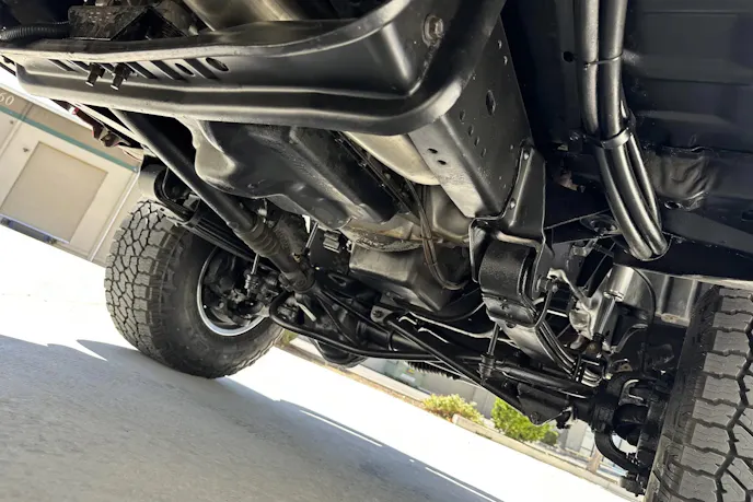 Speaking of looks, this 1995 Ford Centurion C-350 received a two-tone red and white repaint, complemented by Bushwacker-style flares, Fox shocks, and polished 16-inch wheels wrapped in Falken Wildpeaks. The Bronco-style removable fiberglass hardtop gives it that classic SUV vibe, while details like the windshield visor, roof spoiler, and swing-away spare carrier scream 1990s cool. It’s the kind of truck that makes you want to roll into a campground or a car show and watch jaws hit the ground.