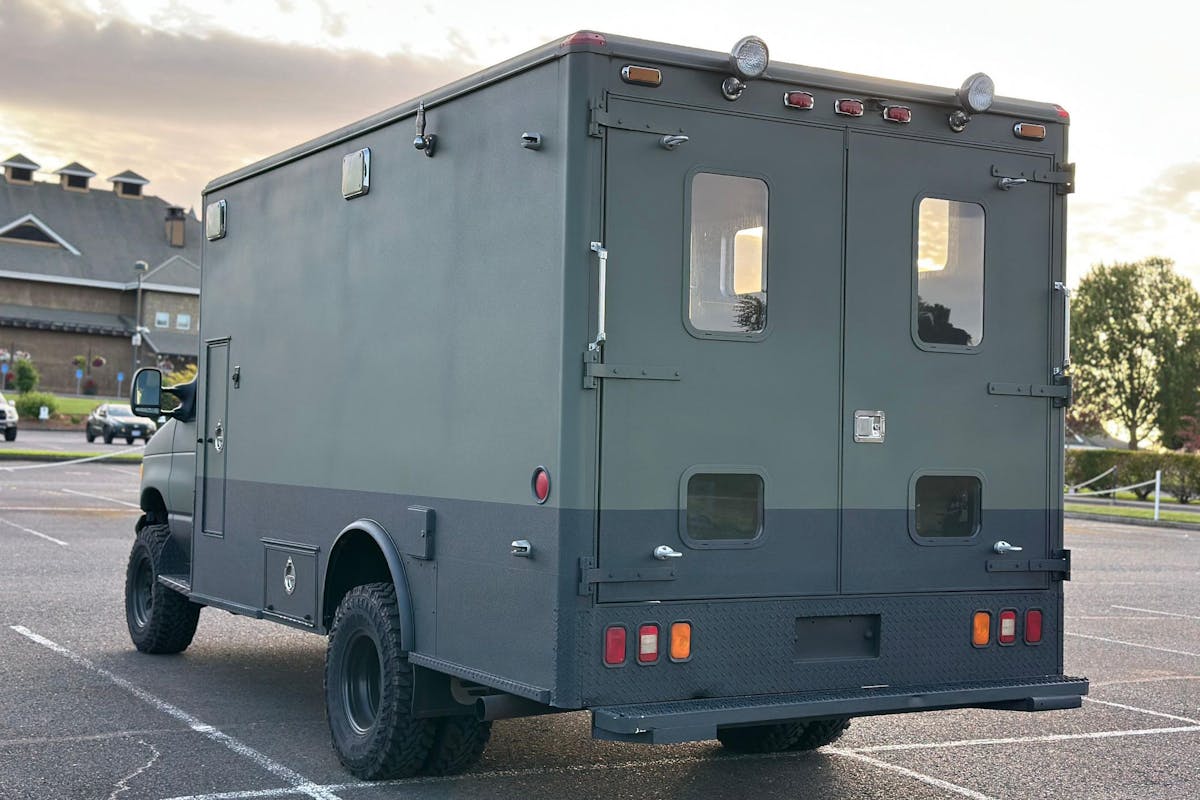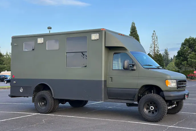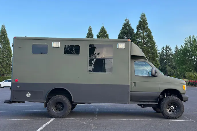 This van started life as a fourth-generation Ford E-Series cutaway van, originally serving as an ambulance. These heavy-duty vans were known for their durability and endless upfitting options. Today, it’s been reimagined as a capable 4×4 off-road camper platform that blends rugged durability with modern versatility.