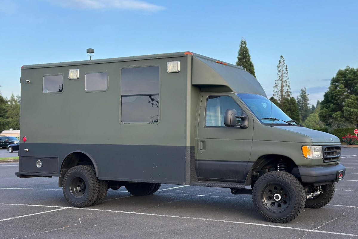 Few engines carry the nostalgic allure of the 7.3-liter Power Stroke turbodiesel V8. Renowned for reliability, torque, and simplicity, it’s the heart of one of the coolest 4×4 conversion overland rigs we’ve seen lately—a 2002 Ford E-450 Super Duty camper van that recently crossed the auction block on Cars & Bids. We’re pretty much not surprised that the high bid of $28,000 didn’t meet reserve. If you’re into vans—real vans—you’re going to dig this one.