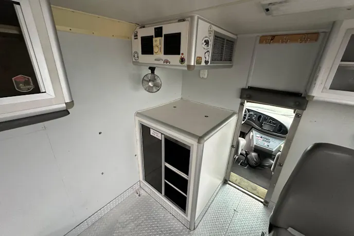 What makes this E-450 particularly exciting is its potential. The current setup provides a functional, durable base, but there’s still plenty of room to take the build further. Enthusiasts could add a full camper interior (with a sleeping platform, galley kitchen, bathroom, and storage systems for bikes and gear), solar panels, auxiliary batteries, and roof racks for serious off-grid storage. Insulation and climate control upgrades would make it a true four-season expedition rig.