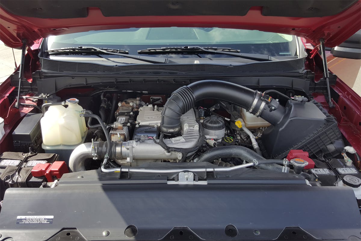 Backing up the Cummins is a six-speed automatic transmission built by Aisin. In two-wheel-drive, this channels into an AAM rearend with a 3.92:1 gear ratio. An electronic locking differential beefs up capability, and drivers can switch quickly between high-/low-range 4WD and 2WD using a dial on the dashboard. In its entirety, the powertrain is rated for 12,300 pounds towing, and 2,500 pounds payload.