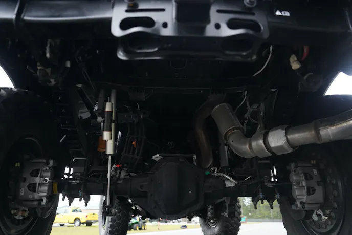 Behind the tires are 4.5-inch Icon Vehicle Dynamics dual-rate front coil springs and 5-inch Icon full-progressive rear leaf springs. Fox Racing 2.5 remote reservoir shocks with Dual Speed Compression (DSC) adjusters manage damping duties. The setup is tuned for off-road abuse while still maintaining the the oversized behemoth’s ride quality.