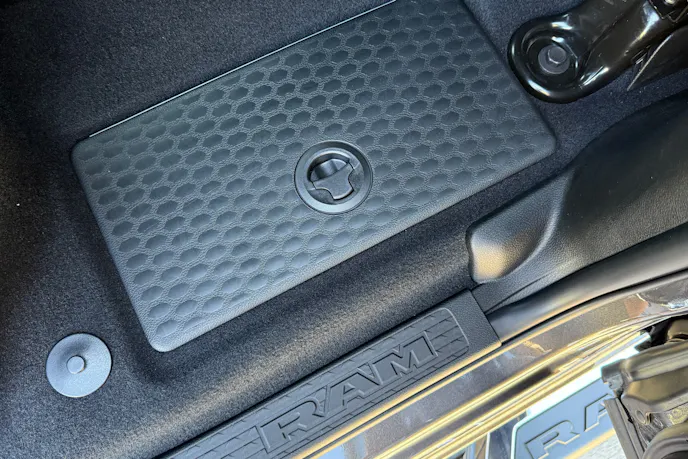 Last but not least, we had to recognize the class-exclusive secure in-floor Ram Bins with removable liners for easy cleaning. These flush storage bins were hidden under the rear floor mats. Ram thinks they’re good for storing things like four-inch drop hitches, but you do you.