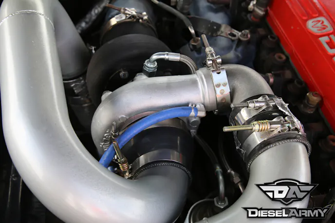 To make sure that he can flow enough exhaust out of the engine, Carr upgraded to a BD Performance T-3 exhaust manifold. A Majestic Turbo S300G (62/65/14) is connected to the manifold and it is fed by a GT4202. Carr and a few friends fabricated all of the plumbing to get everything to fit in the engine compartment.