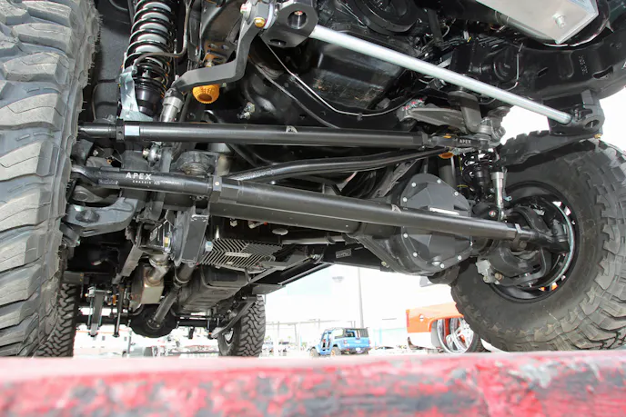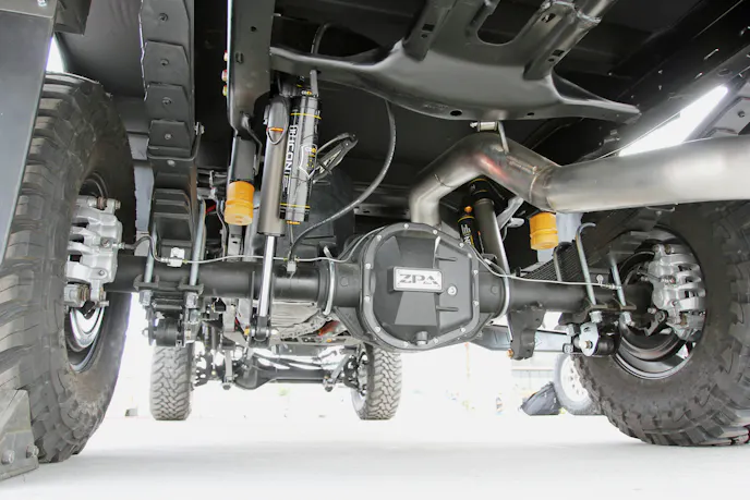 Speaking of axles, Zumbrota Drivetrain also supplied those. Up front is a Ford Dana 60 equipped with a Yukon Grizzly Locker and Yukon manual locking hubs. Out back, a Ford 10.5 axle carries another Yukon Grizzly Locker. Both ends are geared to 4.10:1.