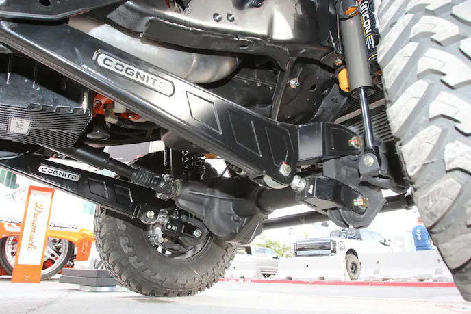 Out back, Carli 1-inch-lift leaf springs are paired with Icon 2.5 piggyback shocks. Each 2.5 shock features Icon’s Compression Damping Electronic Valve and Intelligent Control system, allowing for advanced adjustability. A Hellwig Products rear sway bar and Cognito adjustable traction bars help keep everything planted.