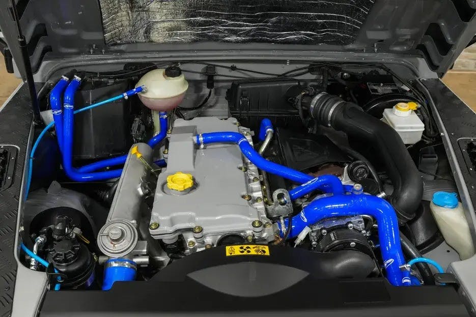 The Defender’s Td5 diesel engine has undergone an extensive rebuild as well. The oil-burner received new valves, pistons, rings, bearings, timing chains, and glow plugs, along with having the cylinders honed and head planed. A new radiator was installed with upgraded silicon hoses and a fresh water pump. The original flywheel was replaced with a new dual-mass unit. The turbocharger was rebuilt, and the Defender received a new intercooler and stainless-steel exhaust system. Engine software was remapped for increased power and torque. When new, this engine produced about 135 hp with 220 lb-ft of torque. Not much of a sportscar, the diesel-powered Defender 90 would hit 60 mph in 14.2 seconds, which likely isn’t the case for this example on 35-inch tires. Max speed is set at 98 mph, and quite frankly that feels like plenty.
