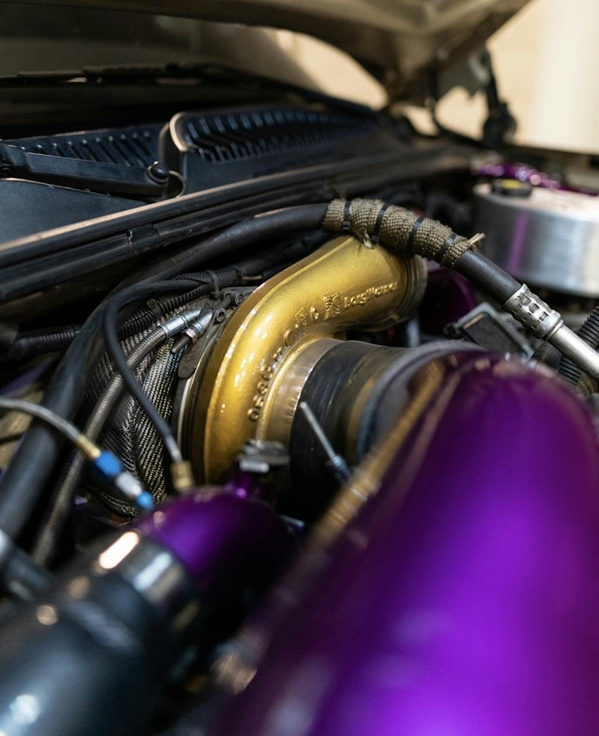 Other engine add-on’s include a Wagler Competition Products pinned oil pump, SoCal Diesel beehive valve springs, and retainers, pushrods, and flexplate all surrounded by ARP hardware. Getting into where the power comes from, this engine is fed with air from a Forced Inductions 476/87/1.0 turbocharger.