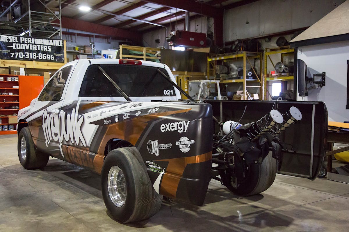 The name Firepunk was forged before the actual business was actually formed. “Firepunk was actually just an online website used to host our pictures, videos, truck builds, and racing events we went to back in 2004,” Lavon says. “We all had full-time jobs and hot-rodding diesel trucks was just a hobby.” There were 10 people in the group that regularly helped each other with different projects.