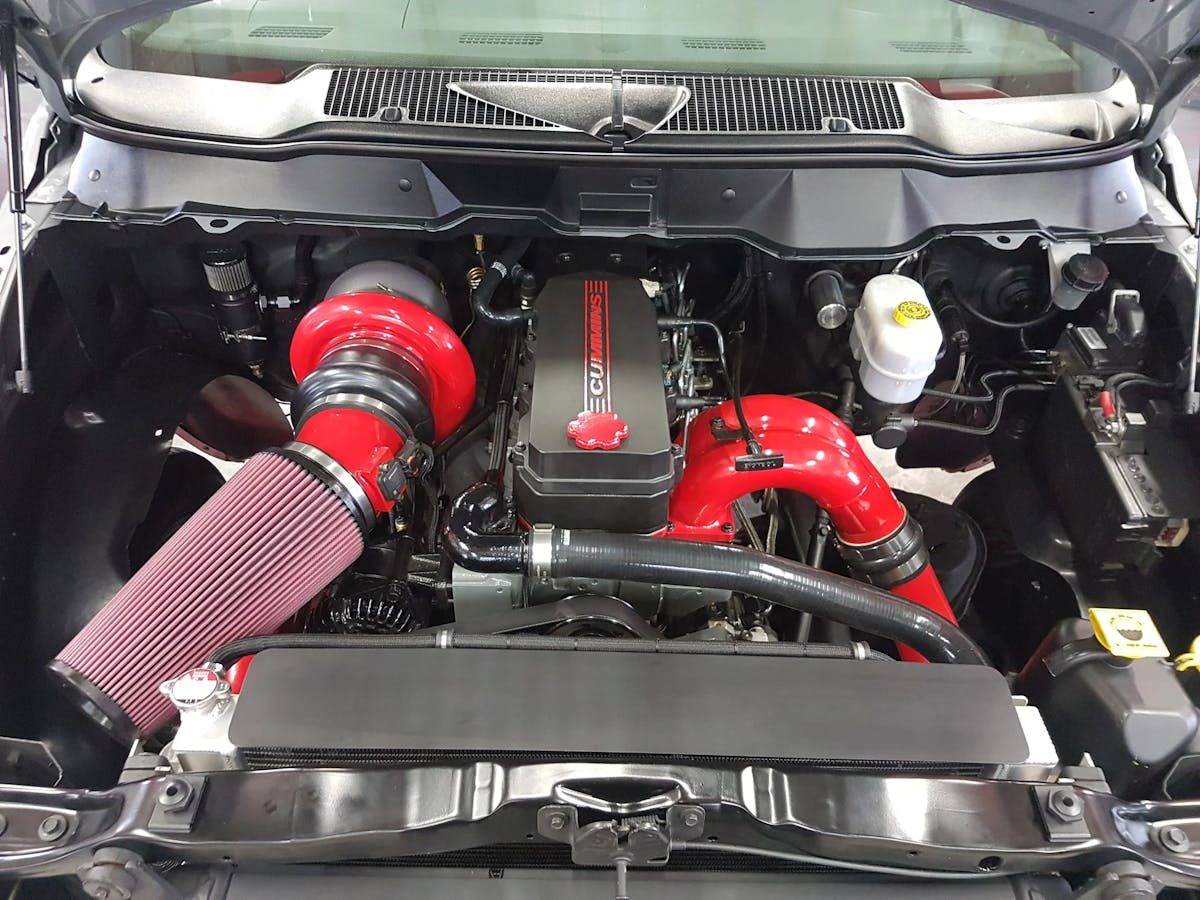 Over the next few months of Durf’s trips to Saudi Arabia, he and his cousin continued the Ram build with the intention of completing soon. New ideas surfaced for the powerplant, which led to the Cummins being removed and dropped at a local machine shop. At the machine shop, the engine was refreshed and gone through to ensure it was capable and reliable enough to support the added power Durf was planning on using.