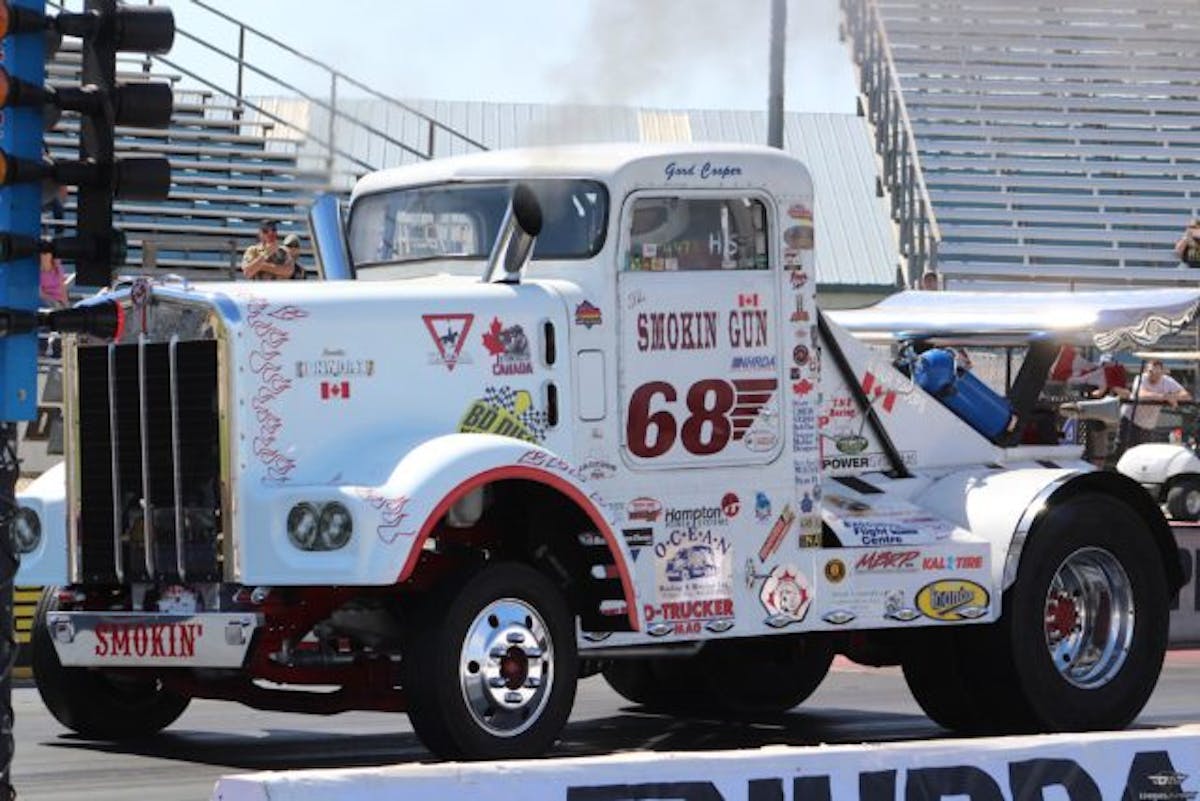 Smokin Gun is a pearl white, 1968 Kenworth W923 (serial number 83774). It’s taken Cooper since 2001 to build this mammoth of a truck, and the original cost was only $15,000. Since then, he’s become affiliated with ATHS and the NHRDA and earned his spot as World Record holder. Smokin Gun owns the record for the fastest hot-rod semi in the world with no sign of a dethroning.