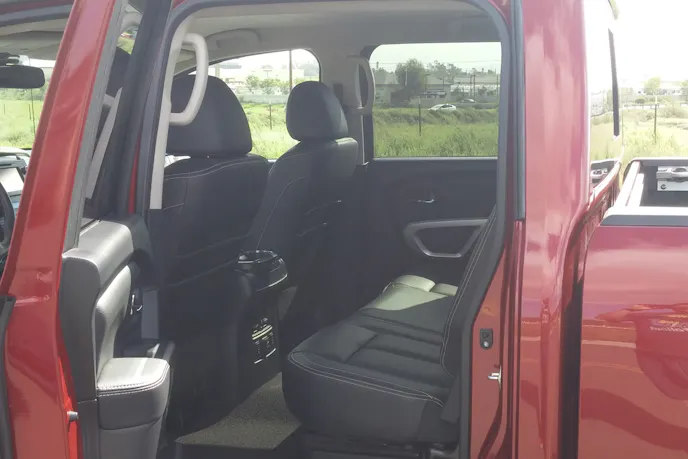 The feel from the driver’s seat was great. As a Pro-4X, the front seats were electronic and had six-way adjustability. A bonus was the heating and cooling ventilation, which was controlled with a seven-position switch in the console. The venting was built into the seat’s back cushion, and pumped air directly onto our backs for soothing relief from the outside world. Headroom felt comfortable, too, and came in handy during the off-road sessions, that’s for sure.