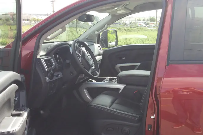 Thanks to the truck’s column shifter, this left a ton of room to work with between the seats, and Nissan made the most of it. Aside from the vast space underneath the console lid, all of the gizmos and doodads to activate the truck’s electronics are right there at the ready: dual-zone climate control, steering wheel heater, parking sensors, etc. Long arms would be required to reach A/C and air inlet buttons, however, unless you had a passenger present.