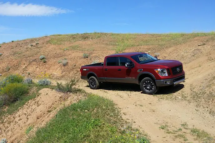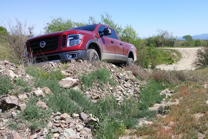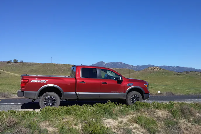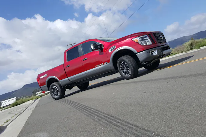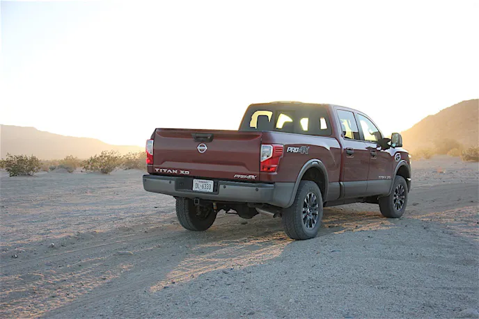 What we did like was the experience once we had turned off traction control. The Titan XD had no problem letting us get a little crazy in the dirt, kicking out the rear end with the throttle stabbed and kicking up dust from a dead stop. Four-wheel-drive and the locking differential were fun to play with, too, so long as we kept the speed below 20 mph.