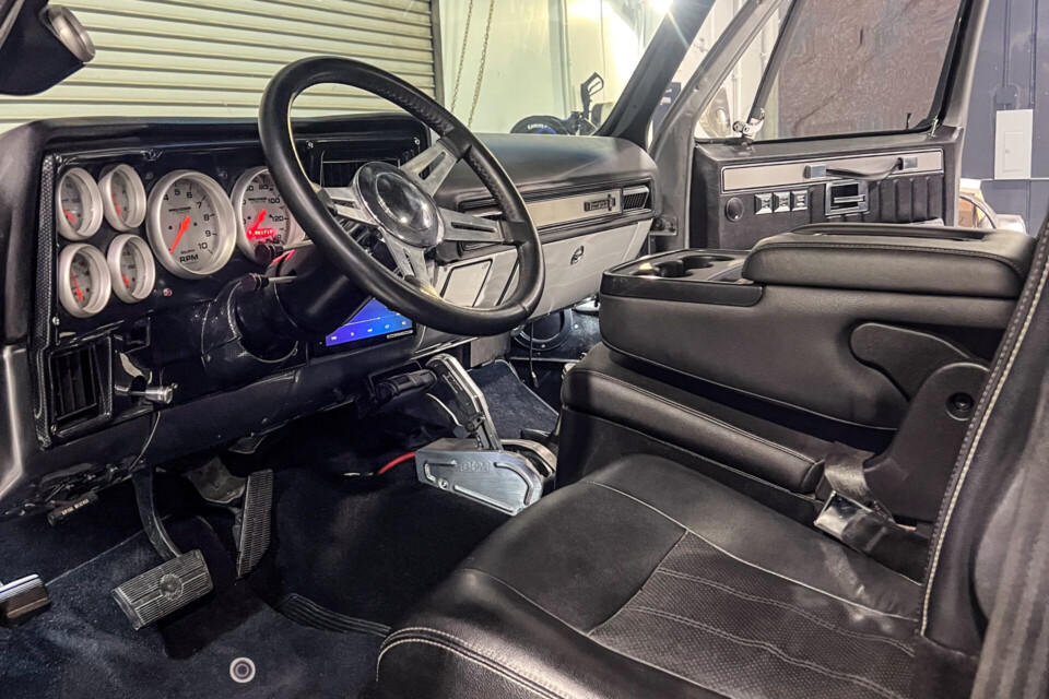 The exterior of the C10 was perfectly restored and painted gray and black, complete with new moldings to freshen up the look. The inside was also updated, which now includes leather seats out of a late model GM truck and a full collection of AutoMeter gauges. To get more presence when driving down the road, Jesse had the truck lifted and utilized some Fox 2.0 reservoir shocks at all four corners. For rollers, a set of 22-inch American Force wheels were used and wrapped with 37×12.50-22 Toyo Open Country tires. Behind these new wheels you will find Wilwood brakes with 6-piston calipers.