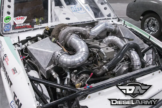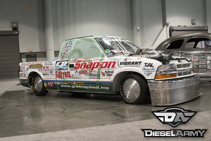 As far as the truck, they are working to break the world speed record for diesel at 215.091 mph. They are now a two engine team (see specs below). They are running a diesel fueled common rail as well as a vegetable powered 12 valve. Their hopes are to run both at a single event to break multiple records during one event.